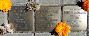 - Hier wohnte, Werner Konrad, Lachmann, Jg 1924, unfreiwillig verzogen, 1938 Berlin, deportiert 1943, ermordet in Auschwitz