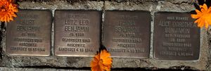 - Hier wohnte, Alice Dorothea Benjamin, geb. Matthes, Jg. 1899, deportiert 1943, Auschwitz, ermordet 4.10.1944