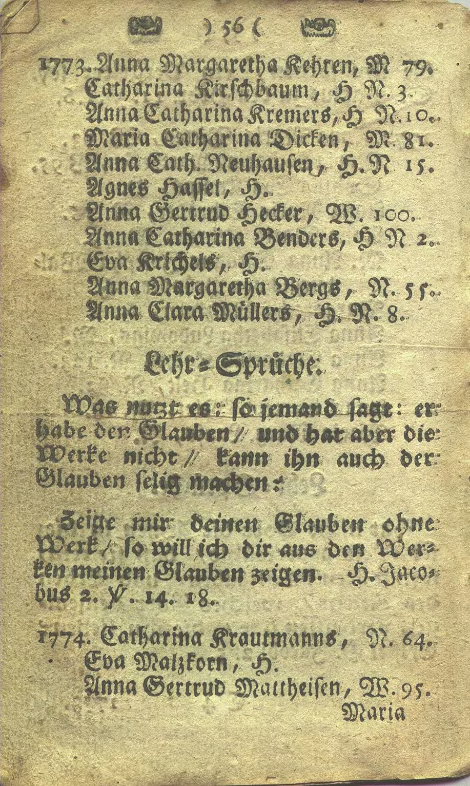 Auf allen Sonn- und Feyer-Tägen (die hohe Feste ausgenommen) wird von zwey bis drey Uhren nachmittags Christliche Lehre gehalten; die ganze Fasten-Zeit aber, von zwölf bis ein Uhr, Monn- Dienstags und Mittwochs mit den kleinen, von 5. bis 9. Jährigen; Donnerstags, Freytags und Samstag mit den Grössern, von zehn bis fünfzehn jährigen.
