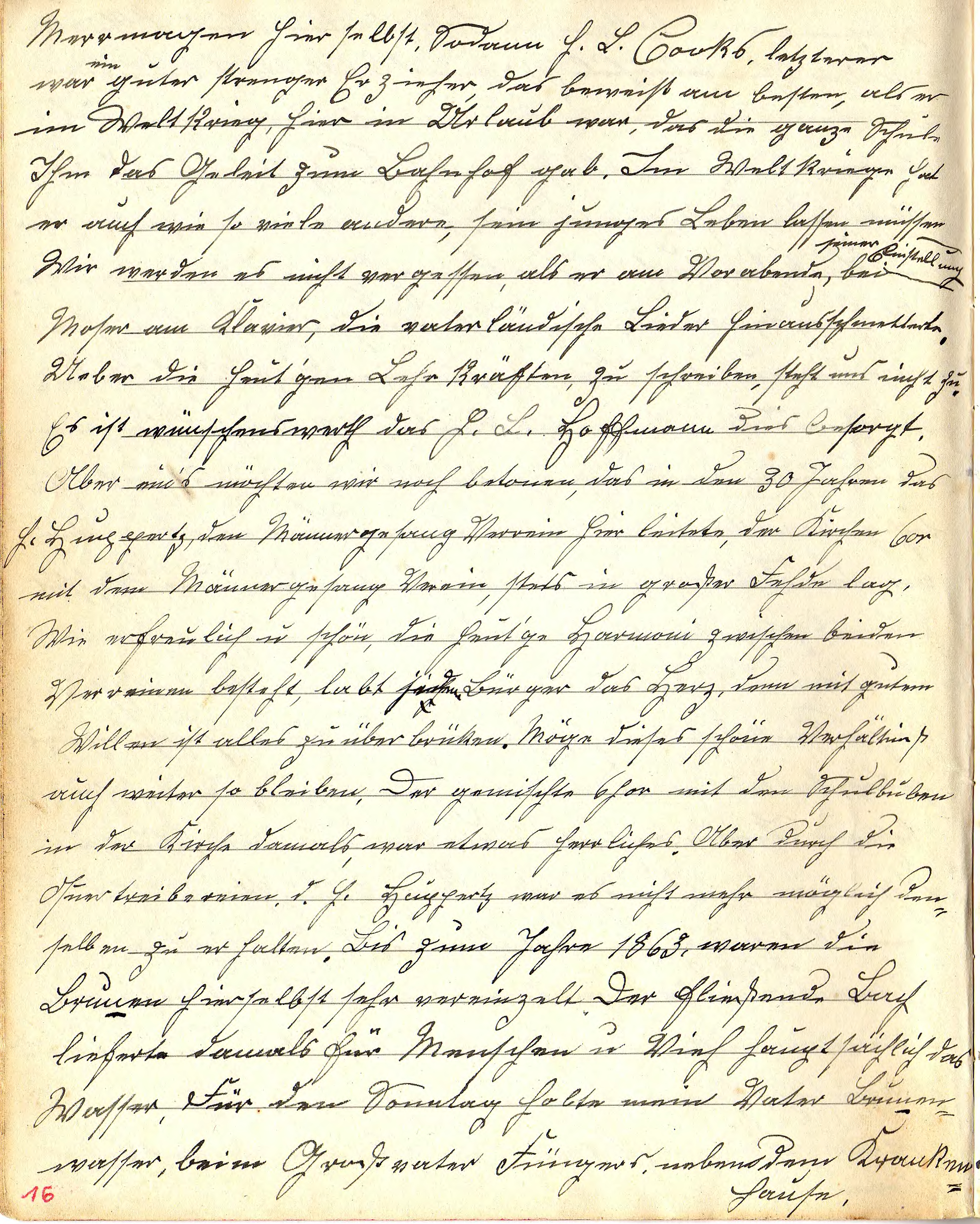 Merrmagen hierselbst. Sodann H. L. Cocks (Cox). Letzterer war ein guter, strenger Erzieher, das beweist am besten, als er im Weltkrieg hier im Urlaub war, dass die ganze Schule Ihm das Geleit zum Bahnhof gab. Im Weltkriege hat er auch wie so viele andere sein junges Leben lassen müssen. Wir werden es nicht vergessen, als er am Vorabende seiner Einstellung bei Moser am Klavier die vaterländische Lieder hinausschmetterte. Über die heut’gen Lehrkräfte zu schreiben steht uns nicht zu. Es ist wünschenswert, das H. L. Hoffmann dies besorgt. Aber eins möchten wir noch betonen, dass in den 30 Jahren das H. Huppertz den Männergesang Verein leitete, der Kirchen Cor mit dem Männergesang Verein stets in großer Fehde lag. Wie erfreulich u. schön die heut’ge Harmonie zwischen beiden Vereinen besteht, labt jedem Bürger das Herz, denn mit gutem Willen ist alles zu überbrücken. Möge dieses schöne Verhältnis auch weiter so bleiben. Der gemischte Chor mit den Schulbuben in der Kirche damals, war etwas Herrliches. Aber durch die Quertreibereien des H. Huppertz war es nicht mehr möglich, denselben zu erhalten. Bis zum Jahre 1863 waren die Brunnen hier sehr vereinzelt. Der fließende Bach lieferte damals für Menschen u. Vieh hauptsächlich das Wasser. Für den Sonntag holte mein Vater Brunnenwasser beim Großvater Füngers, neben dem Krankenhause.