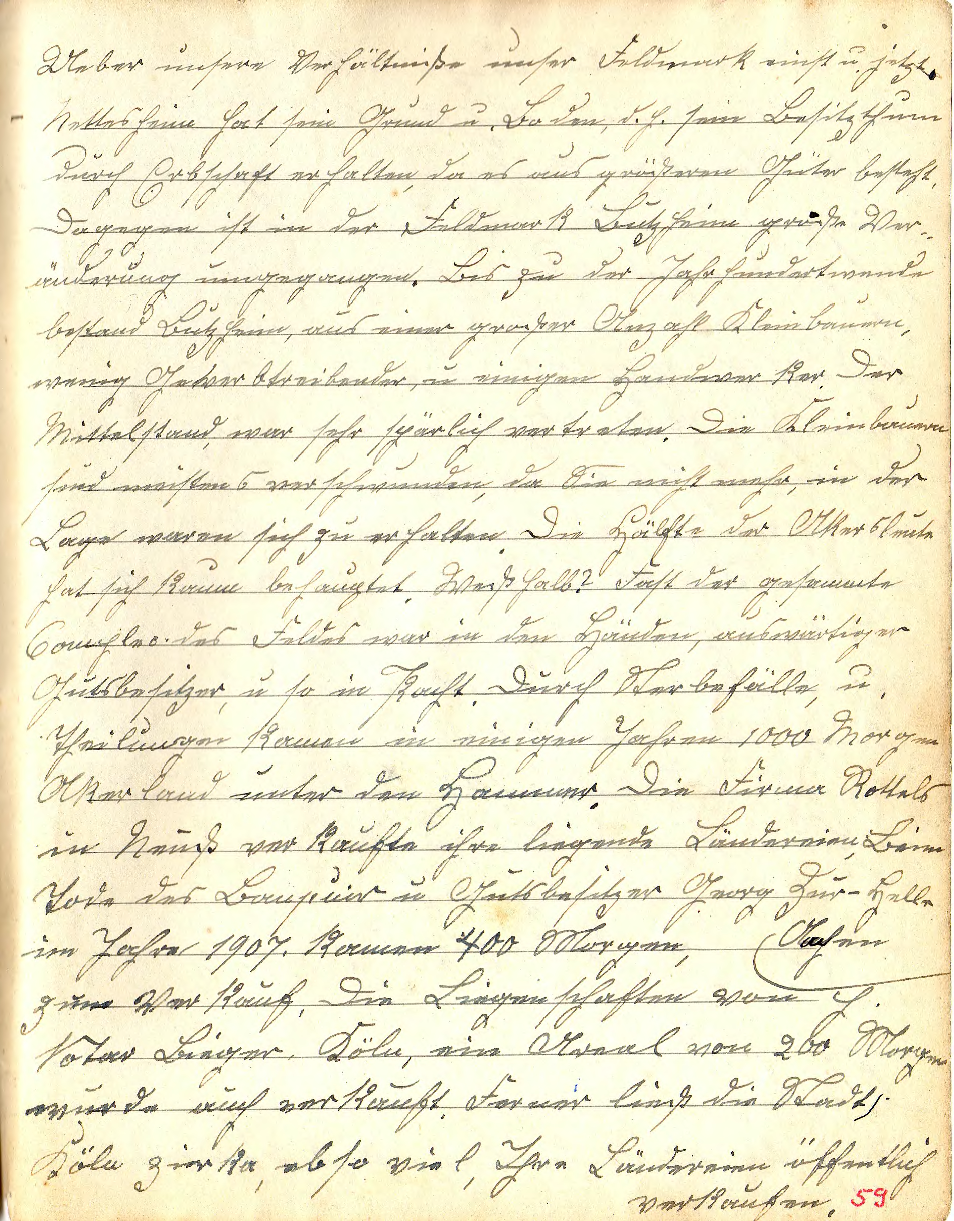 Nettesheim hat sein Grund u. Boden, d. h. sein Besitztum durch Erbschaft erhalten, da es aus größeren Gütern besteht. Dagegen ist in der Feldmark Butzheim große Veränderung umgegangen. Bis zu der Jahrhundertwende bestand Butzheim aus einer großen Anzahl Kleinbauern, wenig Gewerbtreibende u. einigen Handwerkern. Der Mittelstand war sehr spärlich vertreten. Die Kleinbauern sind meistens verschwunden, da sie nicht mehr in der Lage waren sich zu erhalten. Die Hälfte der Ackersleute hat sich kaum behauptet. Weshalb? Fast der gesamte Complex des Feldes war in den Händen auswärtiger Gutsbesitzer u. so in Pacht. Durch Sterbefälle u. Teilungen kamen in einigen Jahren 1.000 Morgen Ackerland unter den Hammer. Die Firma Rottels in Neuß verkaufte ihre liegenden Ländereien. Beim Tode des Banquiers u. Gutsbesitzers Georg Zur-Helle, Aachen, im Jahre 1907 kamen 400 Morgen zum Verkauf. Die Liegenschaften von H. Notar Bieger, Köln, ein Areal von 200 Morgen wurde auch verkauft. Ferner ließ die Stadt Köln zirka ebenso viel Ihre Ländereien öffentlich verkaufen.