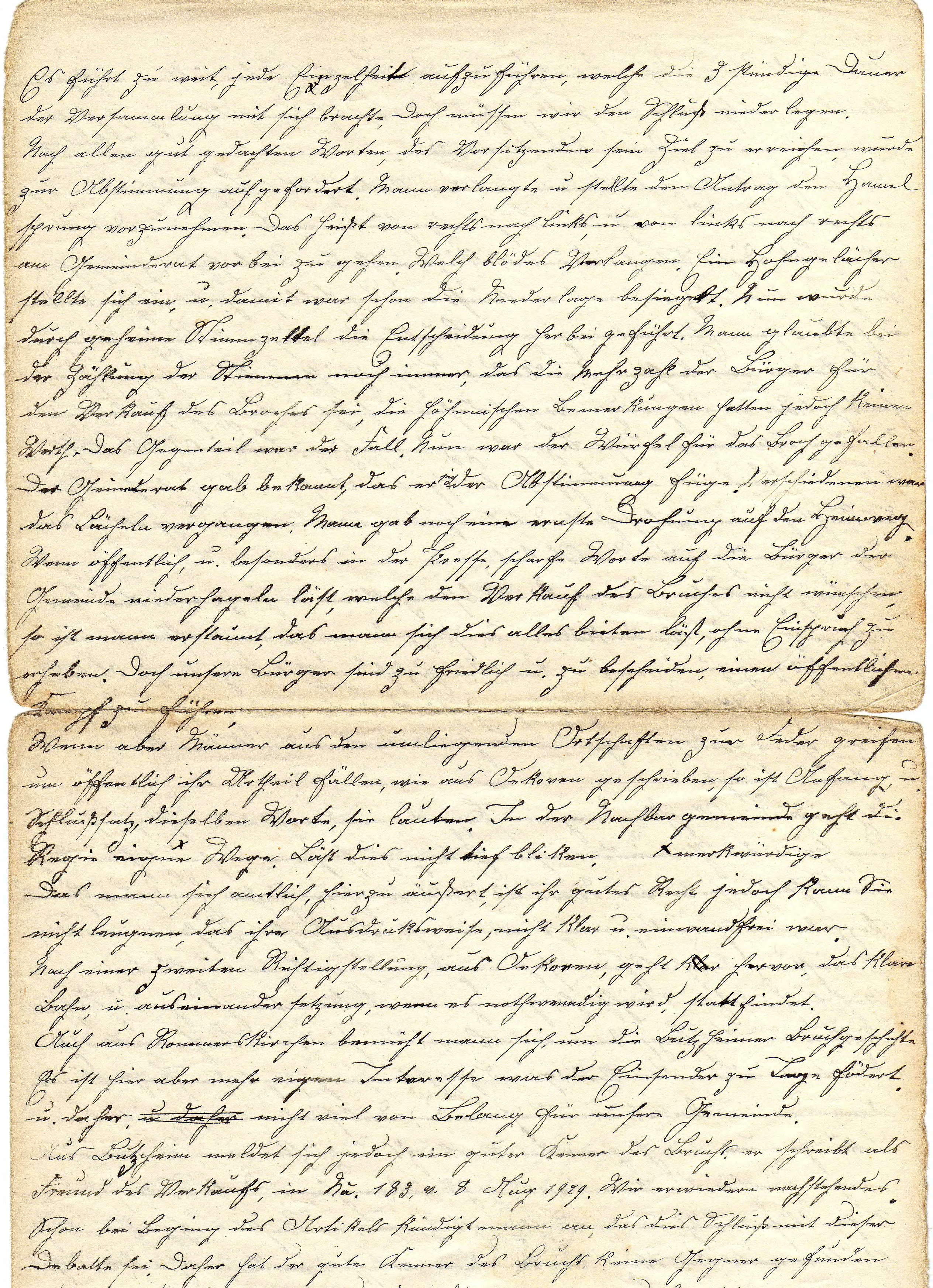 Wenn aber Männer aus den umliegenden Ortschaften zur Feder greifen um öffentlich ihr Urteil fällen, wie aus Oekoven geschrieben, so ist Anfang u. Schlusssatz dieselben Worte, sie lauten. In der Nachbargemeinde geht die Regie eigene merkwürdige Wege. Lässt dies nicht tief blicken?