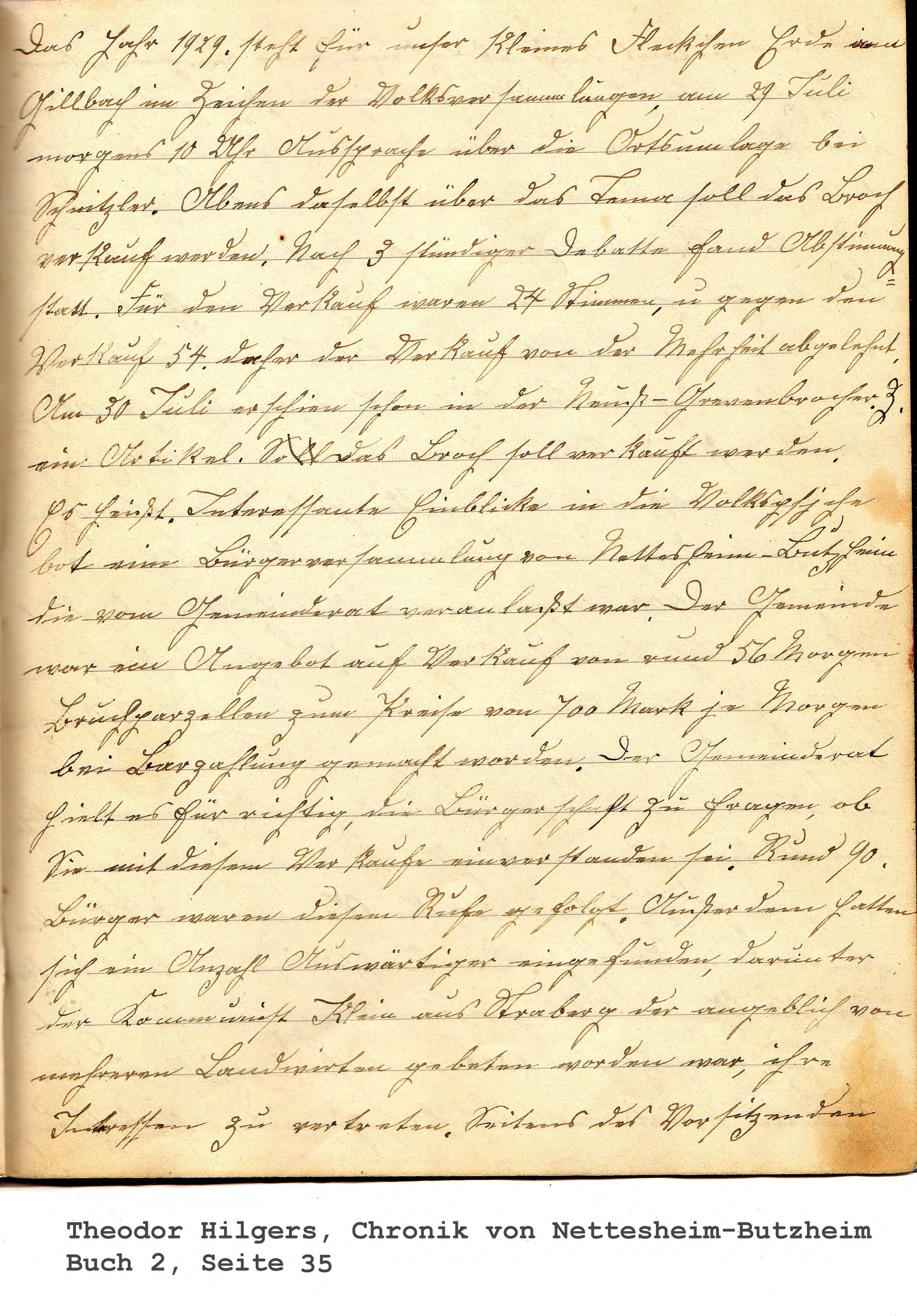 Das Jahr 1929. steht für unser kleines Fleckchen Erde am Gillbach im Zeichen der Volksversammlungen, am 29 Juli morgens 10 Uhr Aussprache über die Ortsumlage bei Schnitzler. Abens daselbst über das Tema soll das Broch verkauf werden. Nach 3 stündiger Debatte fand Abstimmung statt. Für den Verkauf waren 24 Stimmen, u. gegen den Verkauf 54. daher der Verkauf von der Mehrheit abgelehnt. Am 30 Juli erschien schon in der Neuß- Grevenbrocher. Z. ein Artikel. Soll Das Broch soll verkauft werden. Es heißt, Interessante Einblicke in die Volkspsjche bot eine Bürgerversammlung von Nettesheim-Butzheim die vom Gemeinderat veranlaßt war. Der Gemeinde war ein Angebot auf Verkauf von rund 56 Morgen Bruchparzellen zum Preise von 700 Mark je Morgen bei Barzahlung gemacht worden. Der Gemeinderat hielt es für richtig, die Bürgerschaft zu fragen, ob Sie mit diesem Verkaufe einverstanden sei. Rund 90 Bürger waren diesem Rufe gefolgt. Außerdem hatten sich ein Anzahl Auswärtiger eingefunden, darunter der Kommunist Klein aus Straberg der angeblich von mehreren Landwirten gebeten worden war, ihre Interessen zu vertreten. Seitens des Vorsitzenden