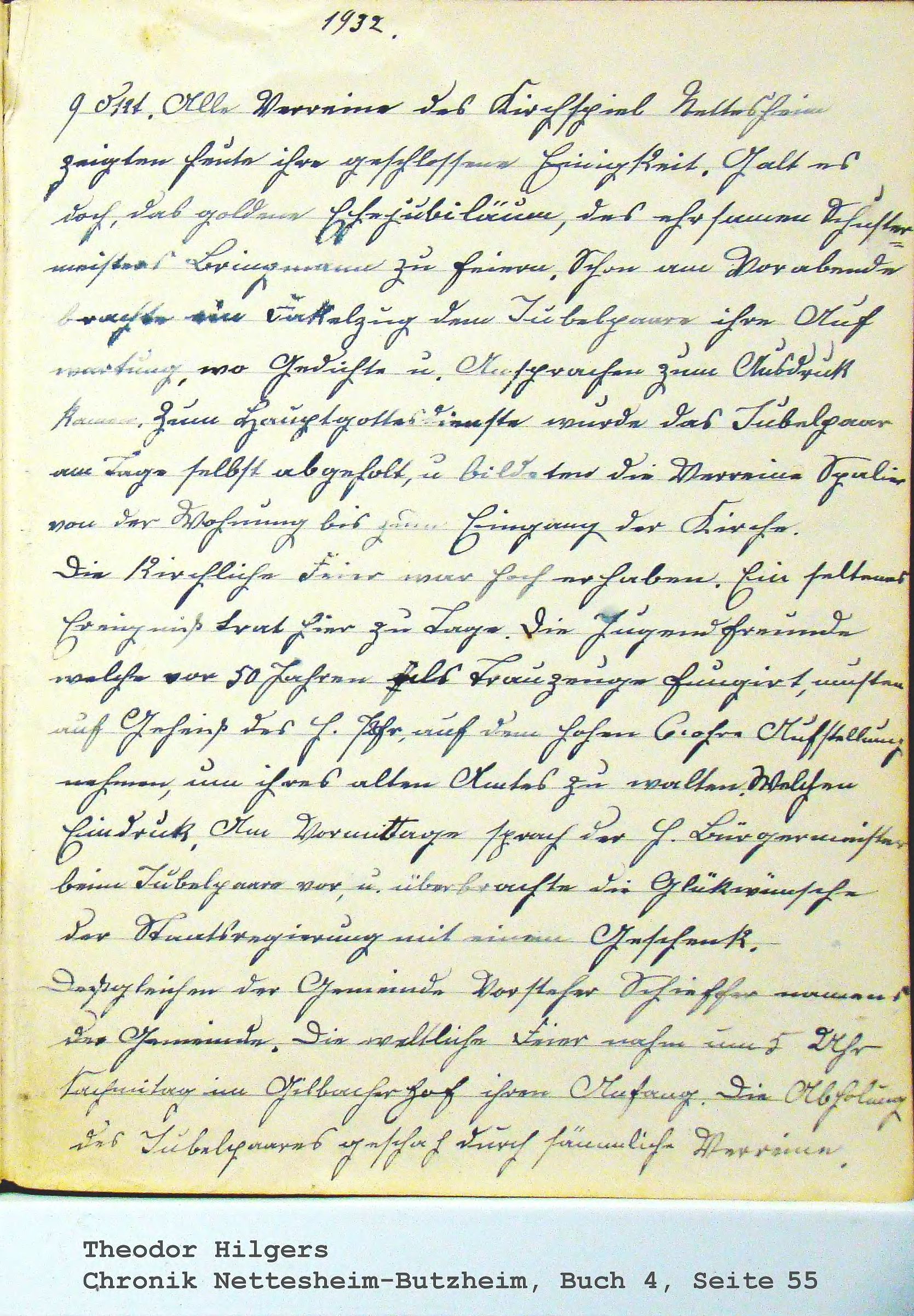 9. Okt. Alle Vereine des Kirchspiel[s] Nettesheim zeigten heute ihre geschlossene Einigkeit. Galt es doch, das goldene Ehejubiläum, des ehrsamen Schustermeisters Bringmann zu feiern. Schon am Vorabende brachte ein Fa[c]kelzug dem Jubelpaare ihre Aufwartung, wo Gedichte u. Ansprachen zum Ausdru[c]k kamen. Zum Hauptgottesdienste wurde das Jubelpaar am Tage selbst abgeholt, u. bildeten die Vereine Spalier von der Wohnung bis zum Eingang der Kirche.