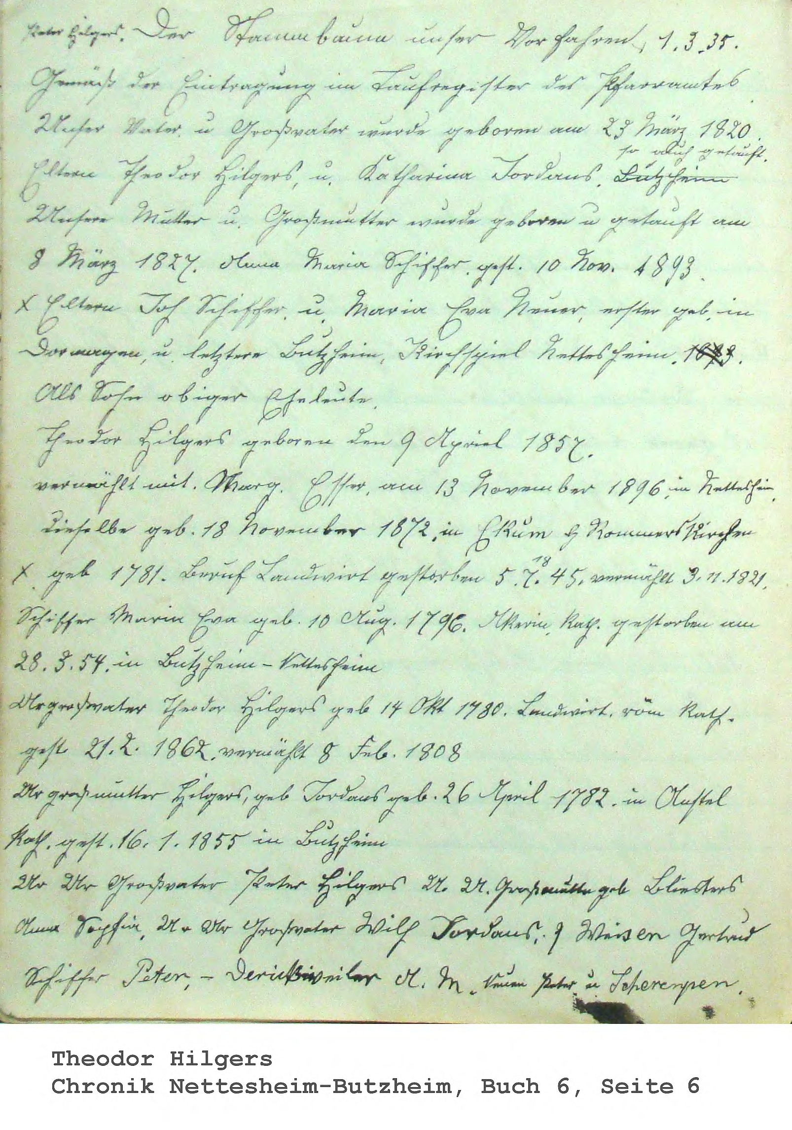 Urgroßvater Theodor Hilgers geb 14 Okt. 1780. Landwirt, röm.kath.,