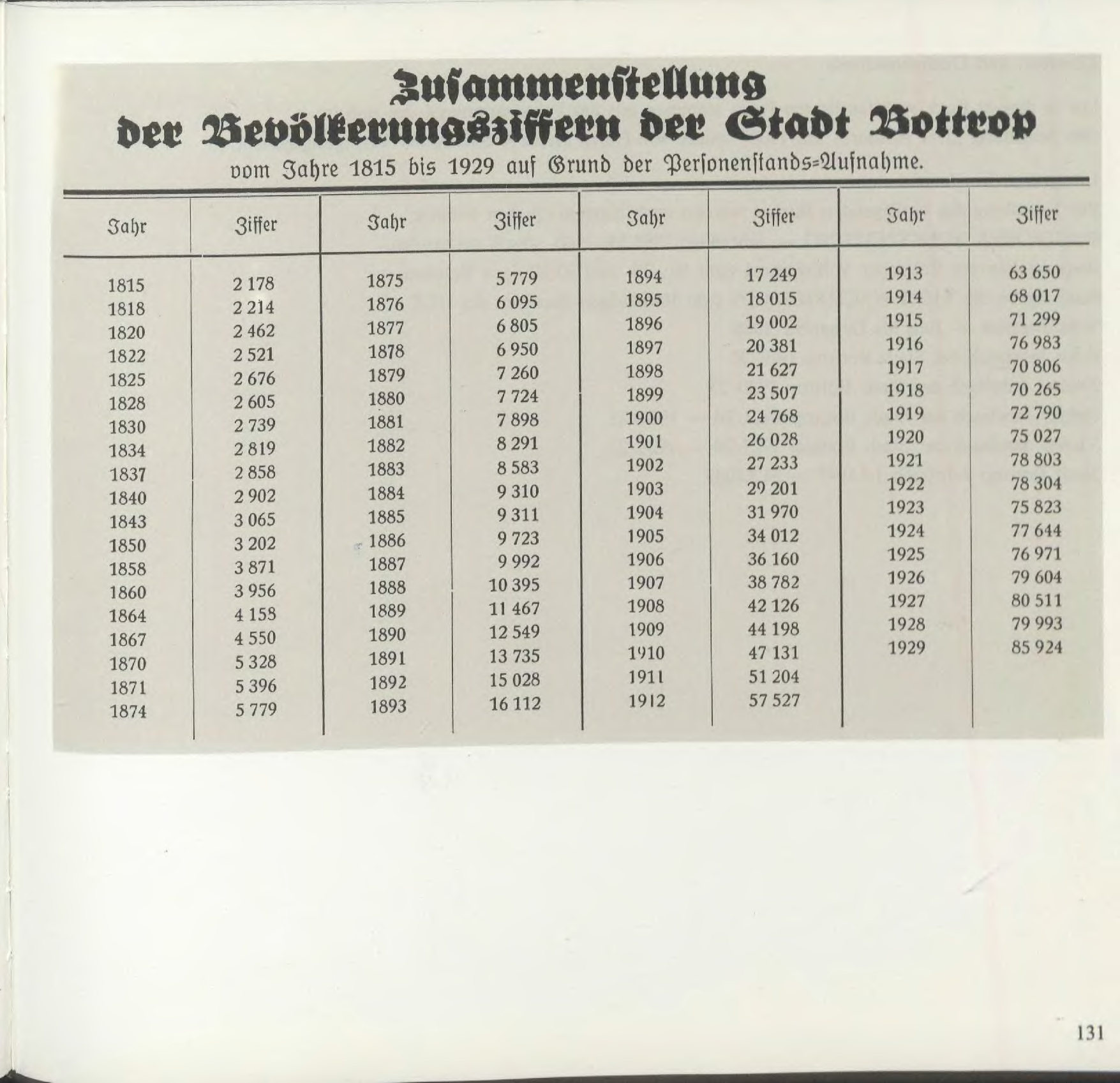 Das alte Bottrop in Bildern/Zustammenstellung-Bevölkerungsziffern
