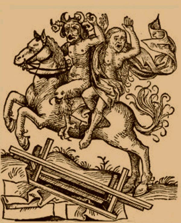 Holzschitt, Teufel entführt eine "boshaftige Zawberin" |