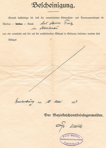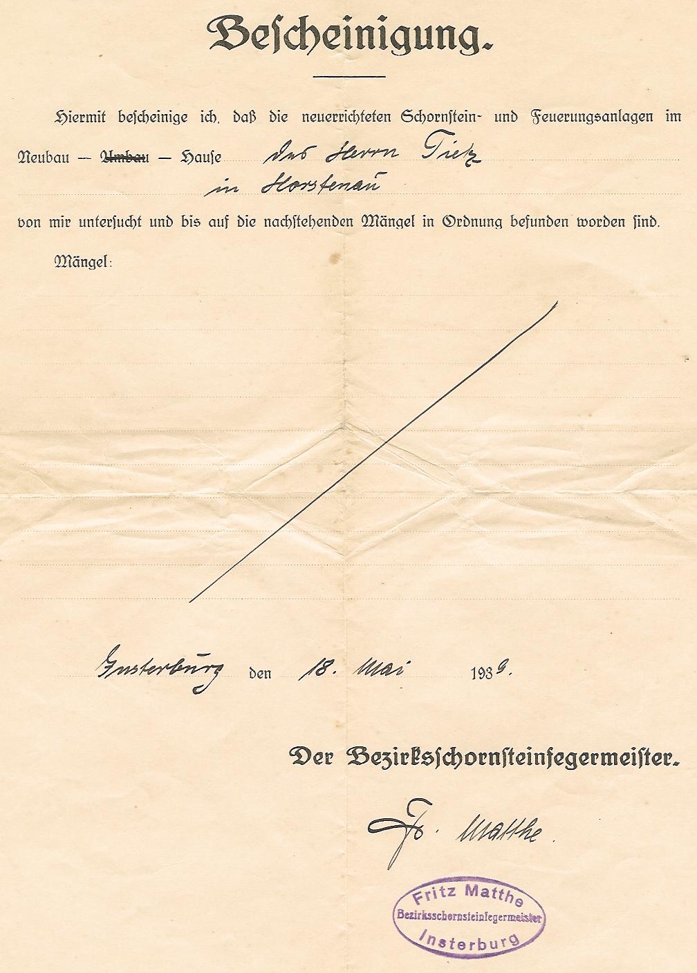 Datei:1939 Bescheinigung Schornsteinfeger Tietz.jpg