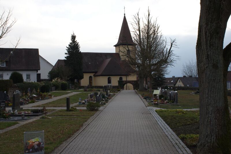 Blickrichtung zur Kreuzkirche - Friedhof Singen (Remchingen) |