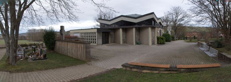 | aktuell | 09:04, 23. Feb. 2023 | 3.033 × 1.080 (691 KB) | Kla-ma-ba (Diskussion • Beiträge) | {{Information |Beschreibung = Aussegnungshalle auf dem Friedhof Weiler (Keltern) |Quelle = eigenes Foto |Urheber = Klaus Martin Bardey |Datum = 31.1.2023 |Scans = |Genehmigung = |Andere Versionen = |Anmerkungen = }} Kategorie:Grabstein-Projekt Category:Images Kla-ma-ba |