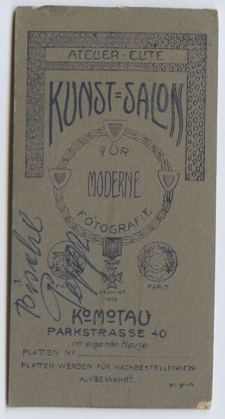 | aktuell | 22:49, 22. Feb. 2024 | 890 × 1.653 (219 KB) | KaiHeinrich (Diskussion • Beiträge) | == Beschreibung == {{Information |Beschreibung = Fotostudio, weitere Details siehe unter "Dateiverwendungen" |Quelle = eigene Sammlung |Urheber = |Datum = |Scans = ''(Repro)'' {{User:KaiHeinrich|KaiHeinrich}} |Genehmigung = gemeinfrei |Andere_Versionen = |Anmerkungen = }} {{Projekt Fotostudios|}} |