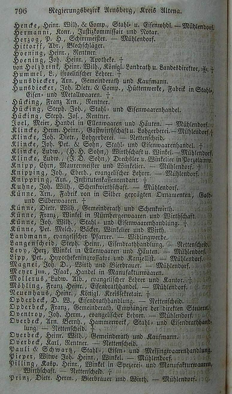 - Beschreibung: Adressbuch von 1834, Seite 796 - Bürgermeisterei Altena