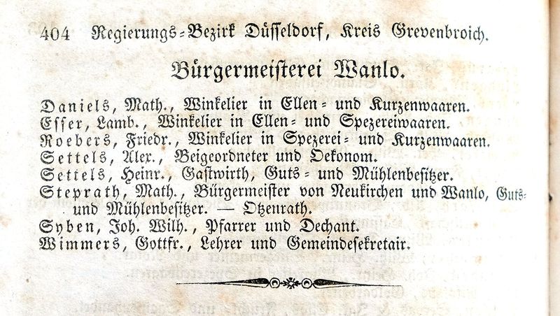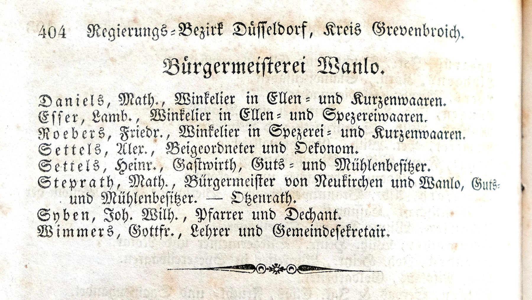 Wanlo im Adress-Buch für Rheinland Westphalen (1834) |