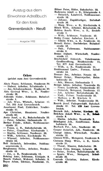 Einwohner-Adreßbuch von 1932 für Orken | |||