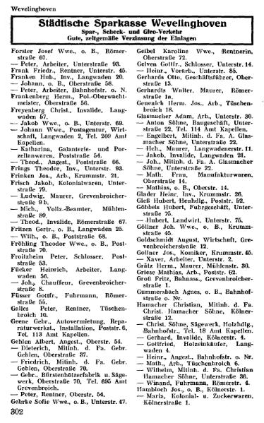 Einwohner-Adreßbuch von 1932 für Wevelinghoven | |||