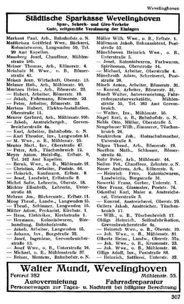 Einwohner-Adreßbuch von 1932 für Wevelinghoven | |||