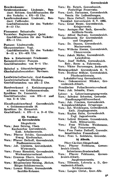 1. Teil = Verzeichnis der Behörden und Vereine des Kreises Grevenbroich-Neuß | |||