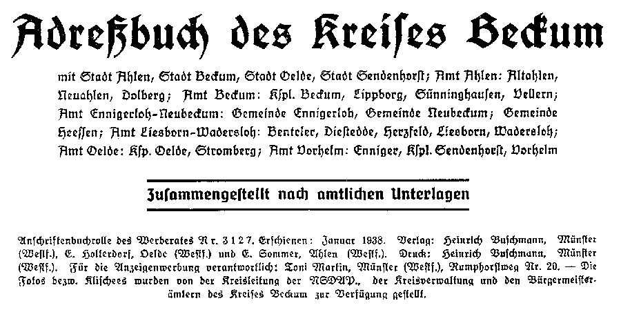 Auszug der Titelseite des Adreßbuches des Kreises Beckum | |||