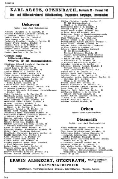 Einwohner-Adressbuch 1953 von Oekoven bis Otzenrath (Seite 244-249) | |||