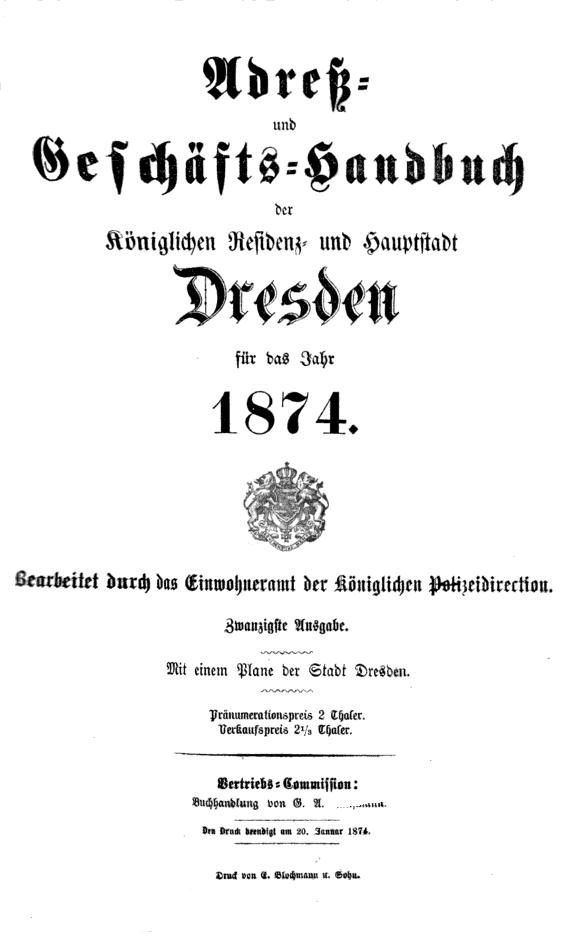 Titelblatt Adressbuch Dresden 1874 |