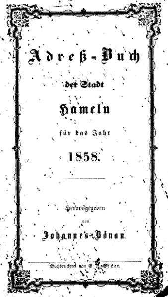 | aktuell | 12:02, 8. Mai 2007 | 1.748 × 3.082, 72 Seiten (2,72 MB) | Jzedlitz (Diskussion • Beiträge) | Adreß-Buch der Stadt Hameln für das 1858 |