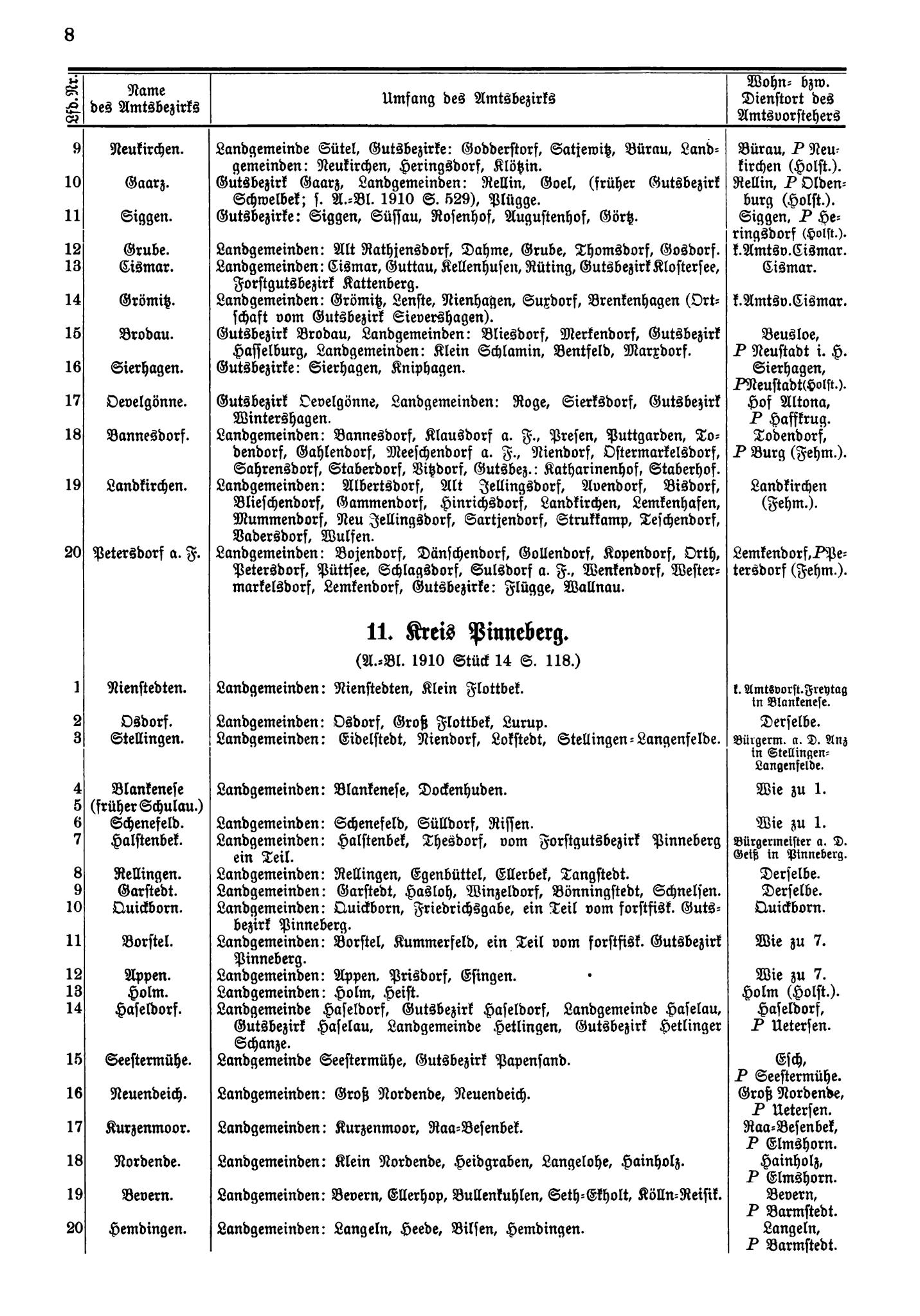 Verzeichnis der Amtsbezirke … der Provinz Schleswig-Holstein | ||