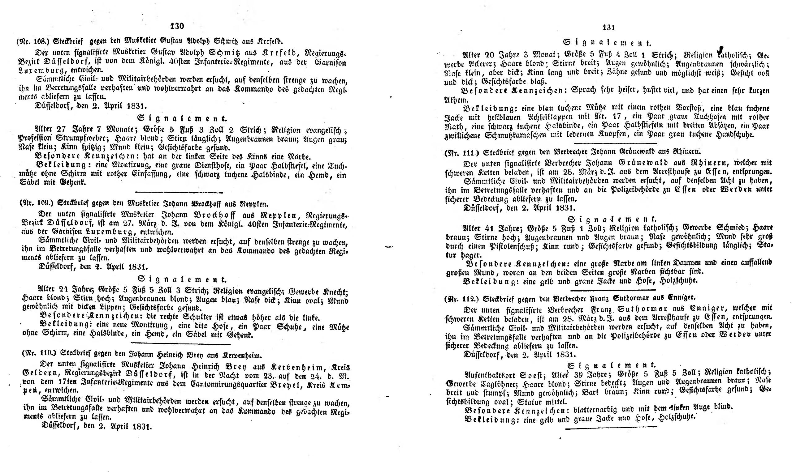 | aktuell | 12:42, 25. Mai 2012 | 1.824 × 2.234, 23 Seiten (1,23 MB) | KlausErdmann (Diskussion • Beiträge) | {{Information |Beschreibung = ;Amtsblatt der Königlichen Regierung zu Düsseldorf :Jahrgang 1831 - April |Quelle = Gemeindearchiv Rommerskirchen |Urheber = Scan & Repro: Klaus Erdmann ''(25.05.2012)'' |Datum = Februar 1831 |Genehmi |
