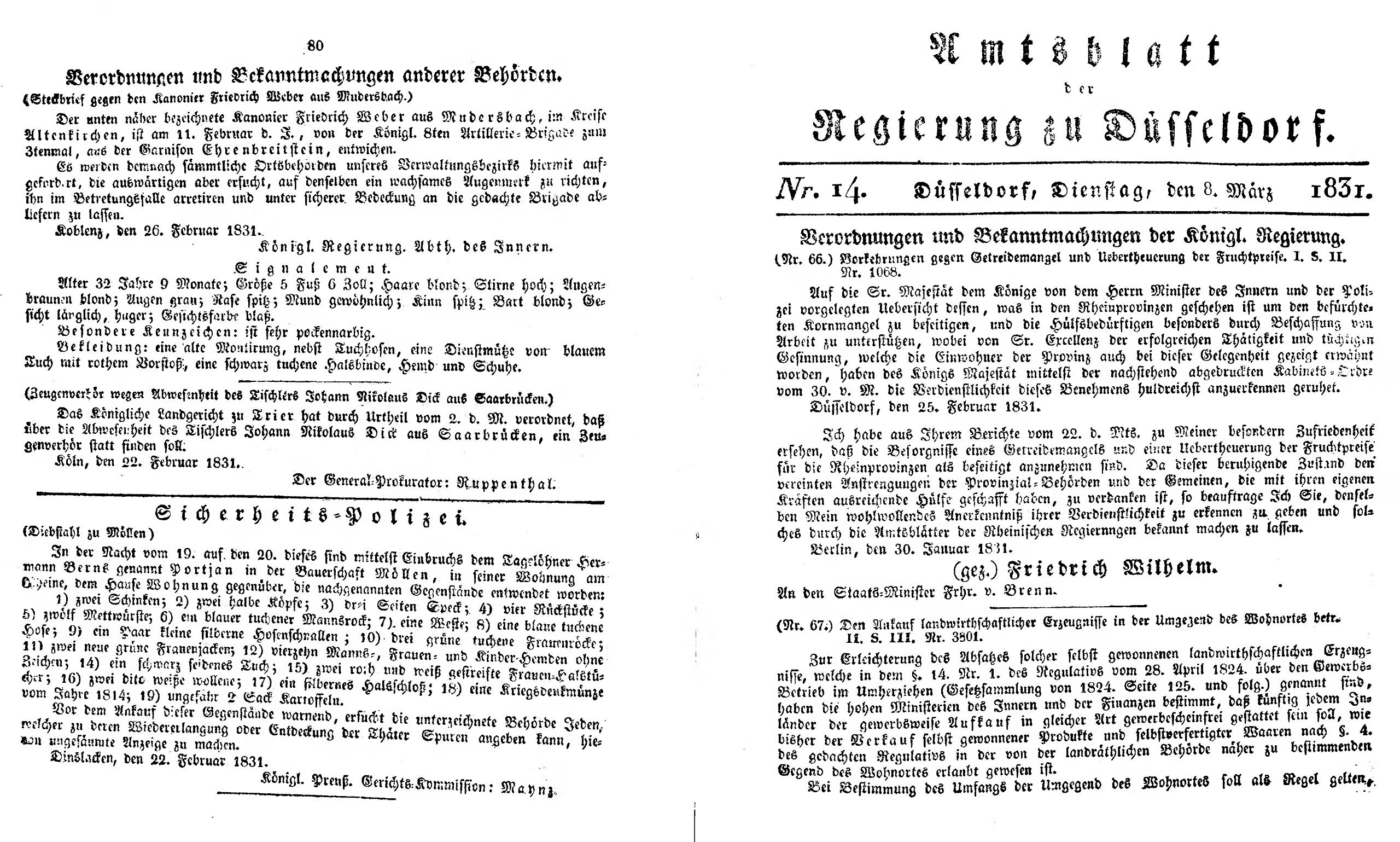 | aktuell | 11:39, 25. Mai 2012 | 1.827 × 2.244, 29 Seiten (1,58 MB) | KlausErdmann (Diskussion • Beiträge) | {{Information |Beschreibung = ;Amtsblatt der Königlichen Regierung zu Düsseldorf :Jahrgang 1831 - Februar |Quelle = Gemeindearchiv Rommerskirchen |Urheber = Scan & Repro: Klaus Erdmann ''(25.05.2012)'' |Datum = Februar 1831 |Geneh |