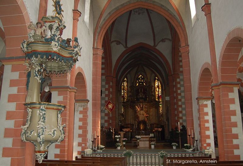 - Beschreibung: Innenansicht der kath. Pfarrkirche St. Margareta in Arnstein a.d. Lahn.