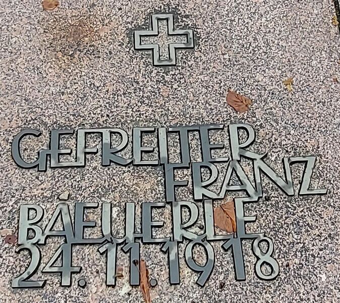 Grab-/Gedenkplatte des Gefreiten Franz Bauerle auf der Kriegs- und Gedenkstätte Meersburg-Lerchenberg.