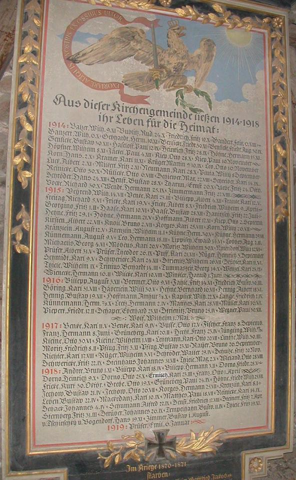 Gedenktafel für die Gefallenen des 1. WK in Belzig