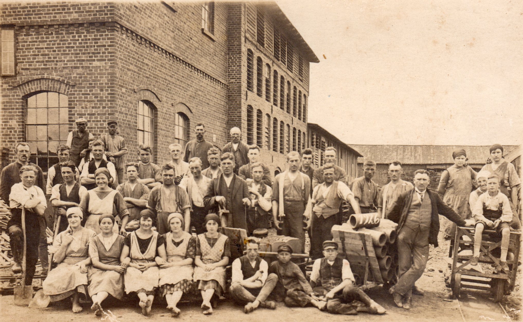 Belegschaft der Ziegelei Danielczick, Schillfelder-Straße, Lasdehnen/Haselberg, Kreis Schloßberg, Ostpreußen; heute Rayon Krasnoznamensk, Russische Föderation, | ||