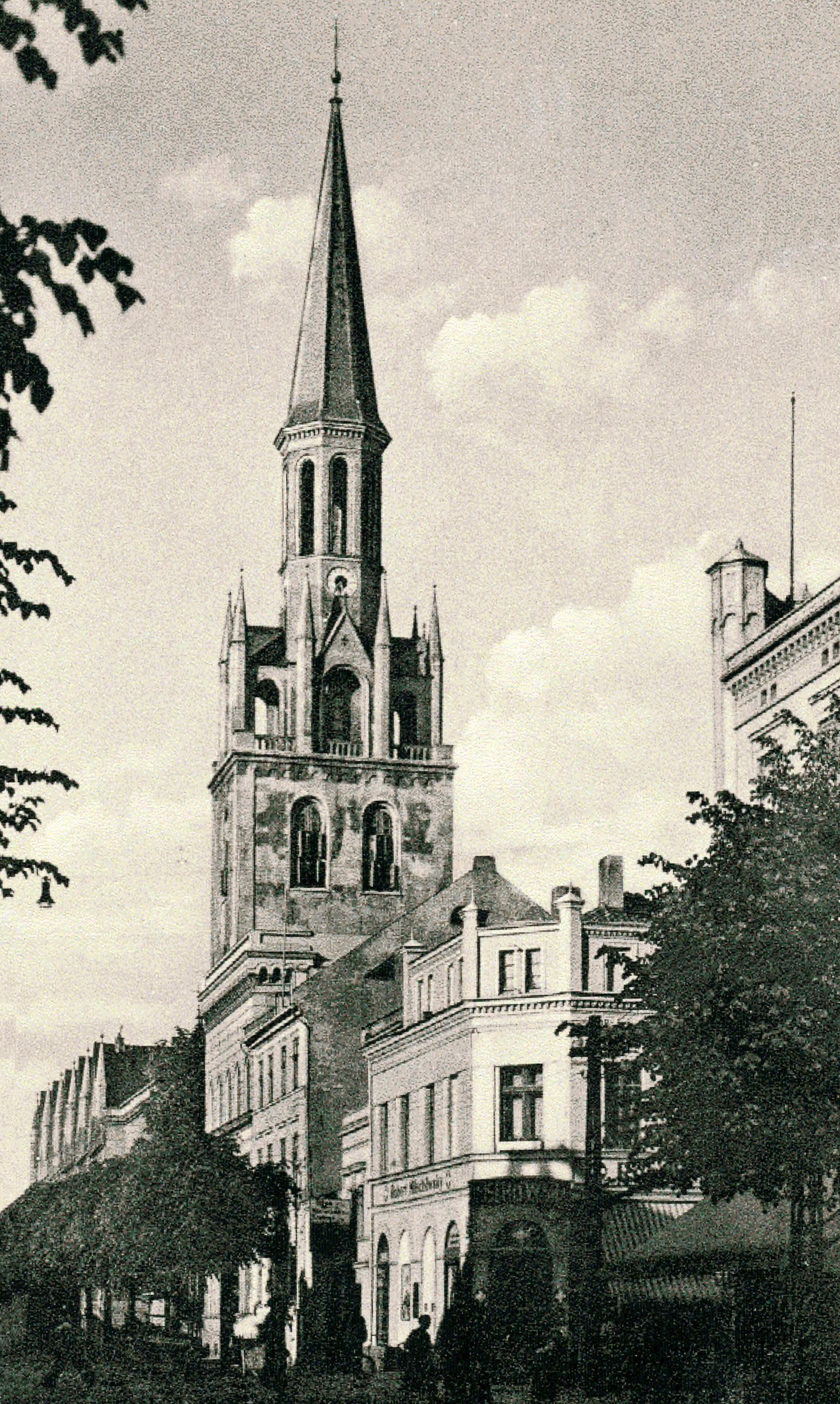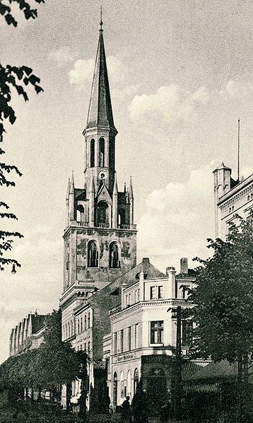 Blick von Der Marktstraße auf die Johanniskirche in Memel