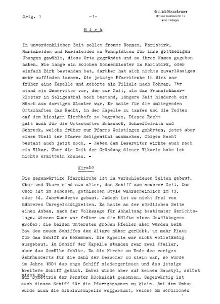 Chronik der kath. Pfarrgemeinde St. Mariä Geburt in Birk | |||