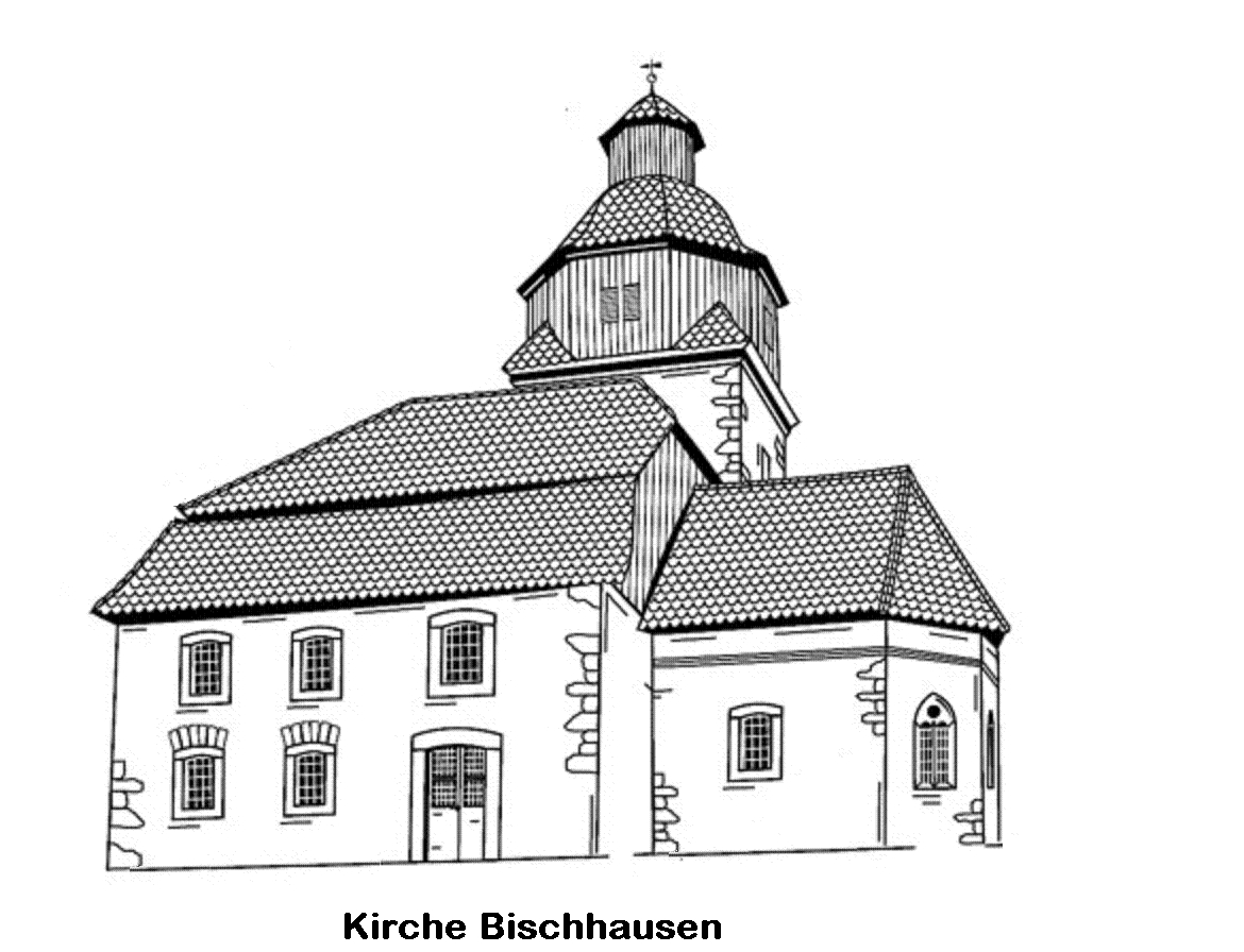 Federzeichnung von der ev. Pfarrkirche in Bischhausen, OT von Waldkappel |