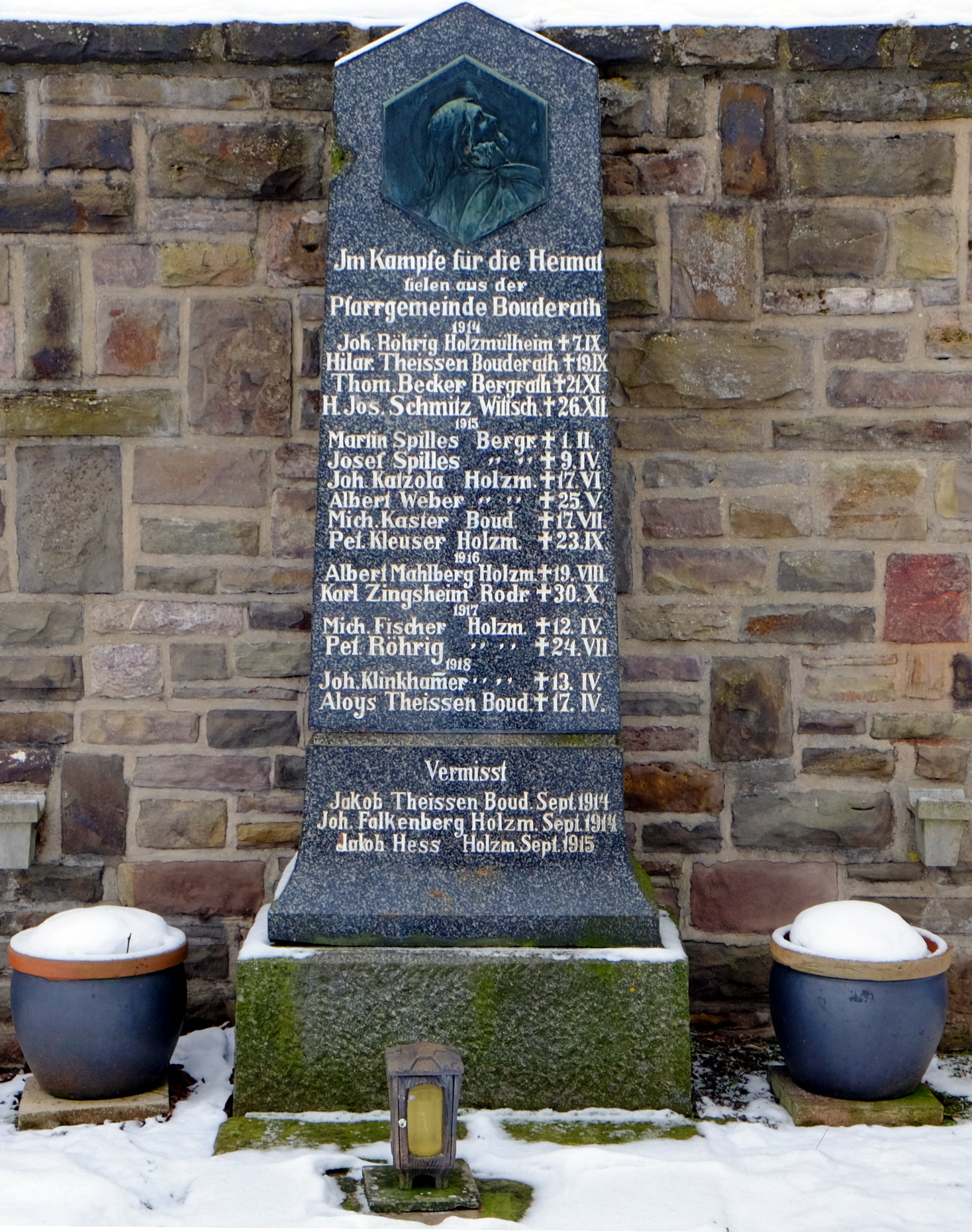Das Denkmal für die Opfer der beiden Weltkriege an der Kirche von Bouderath | ||||