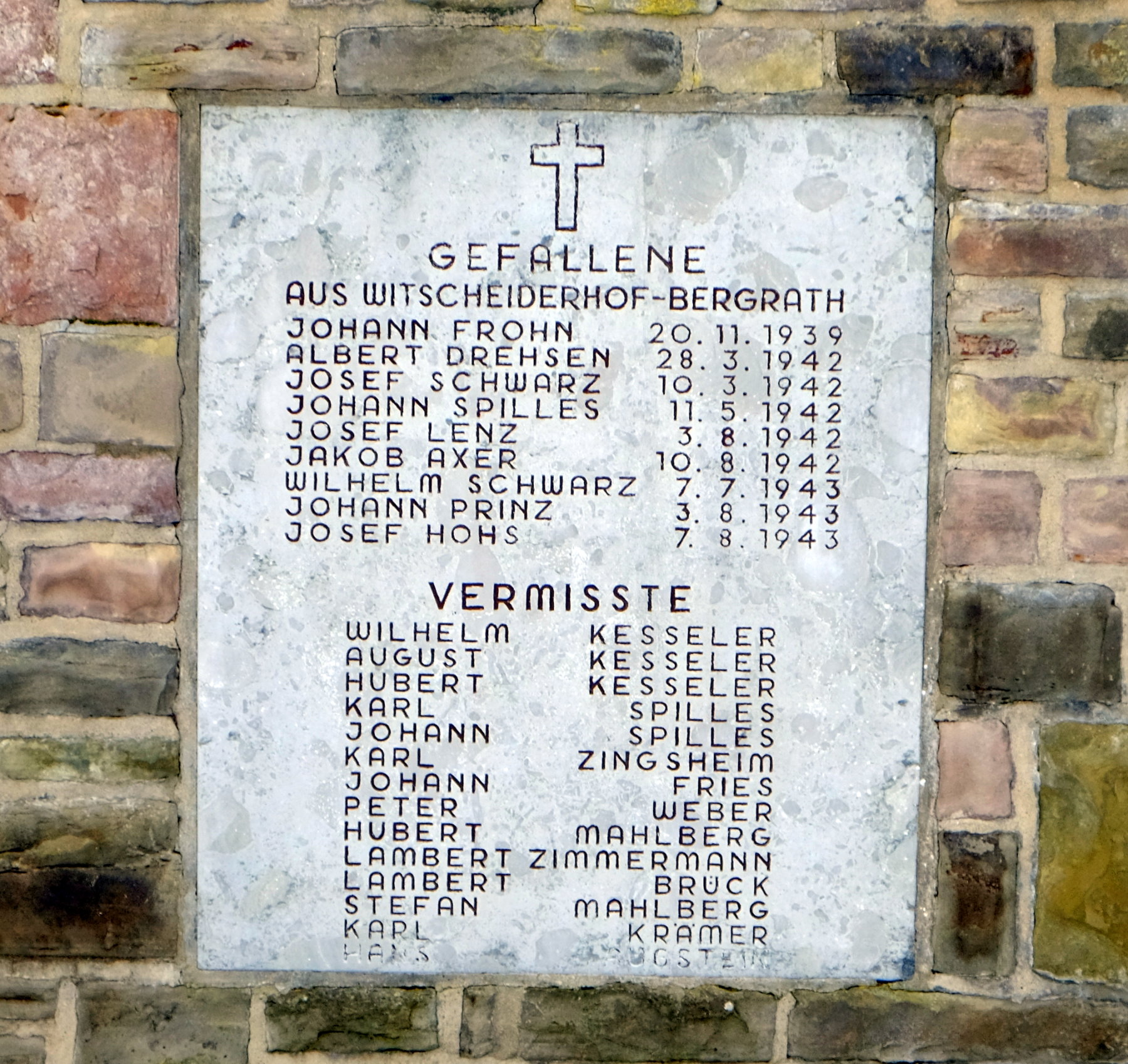 Das Denkmal für die Opfer der beiden Weltkriege an der Kirche von Bouderath | ||||
