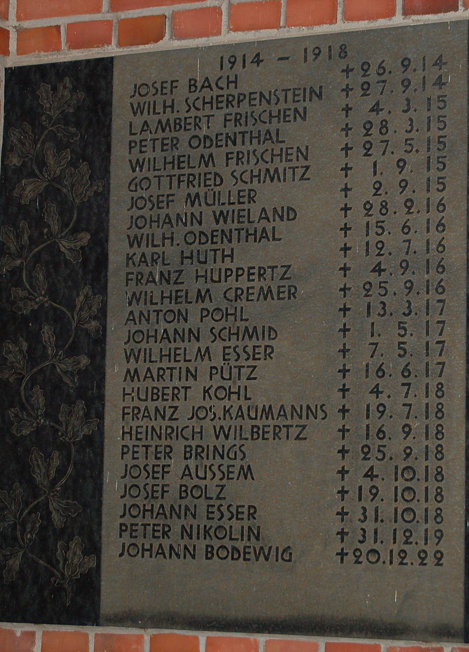 - Beschreibung: Linke Gedenktafel an der St. Agatha-Kapelle, Broich (Bedburg/Erft).