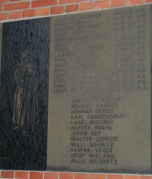 - Beschreibung: Rechte Gedenktafel an der St. Agatha-Kapelle, Broich (Bedburg/Erft).