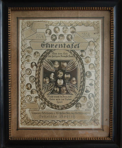 Ehrentafel für die Mitkämpfer und Opfer von 1914-1918 in der Gemeinde Broich | |||