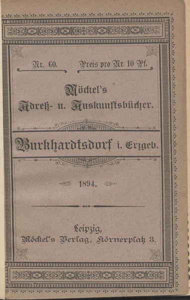 Titelseite des Adressbuchs von Burkardtsdorf im Erzgebirge von 1894 |
