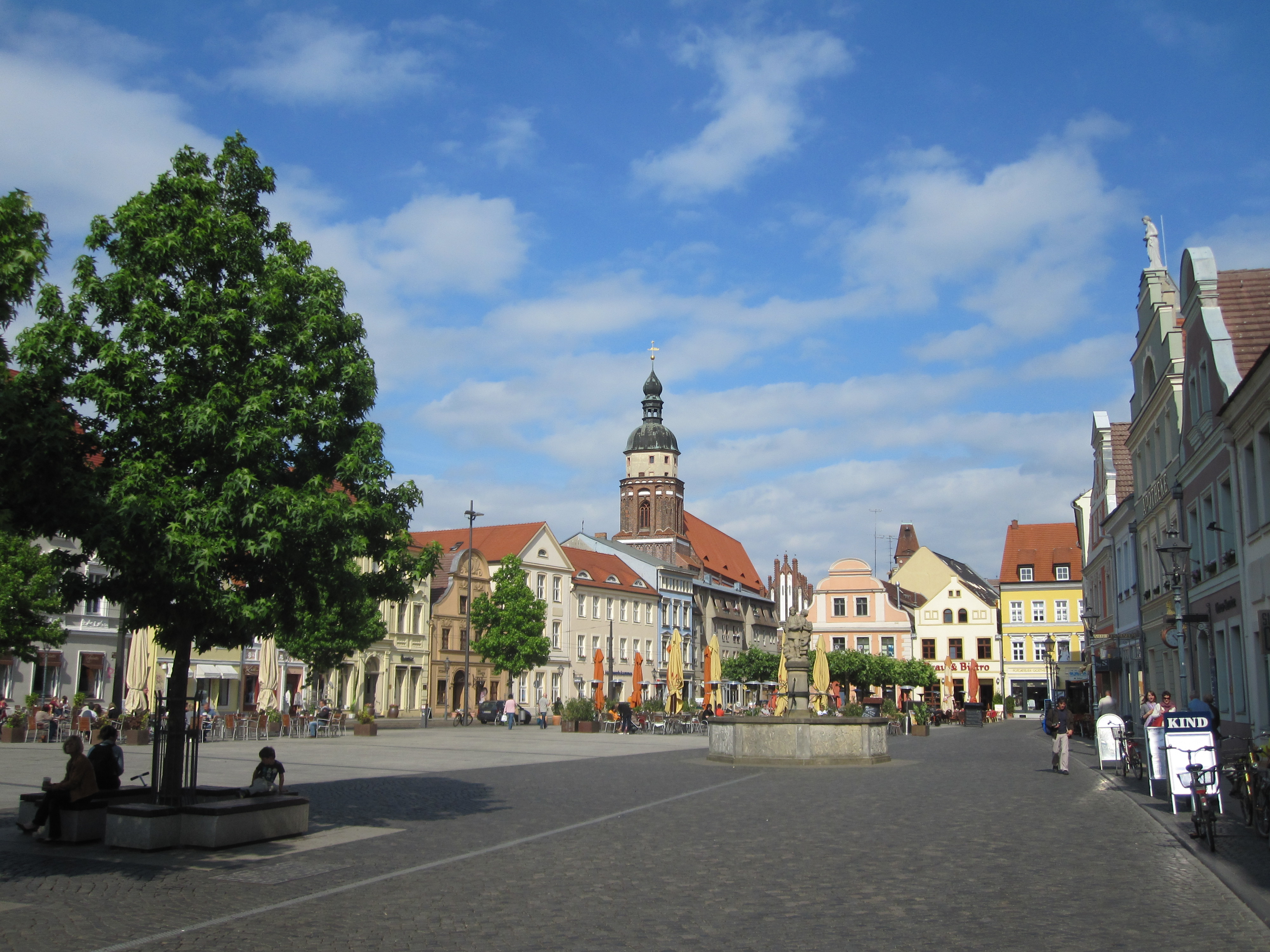Cottbus: Oberkirche St. Nikolai, gesehen vom Altmarkt aus |
