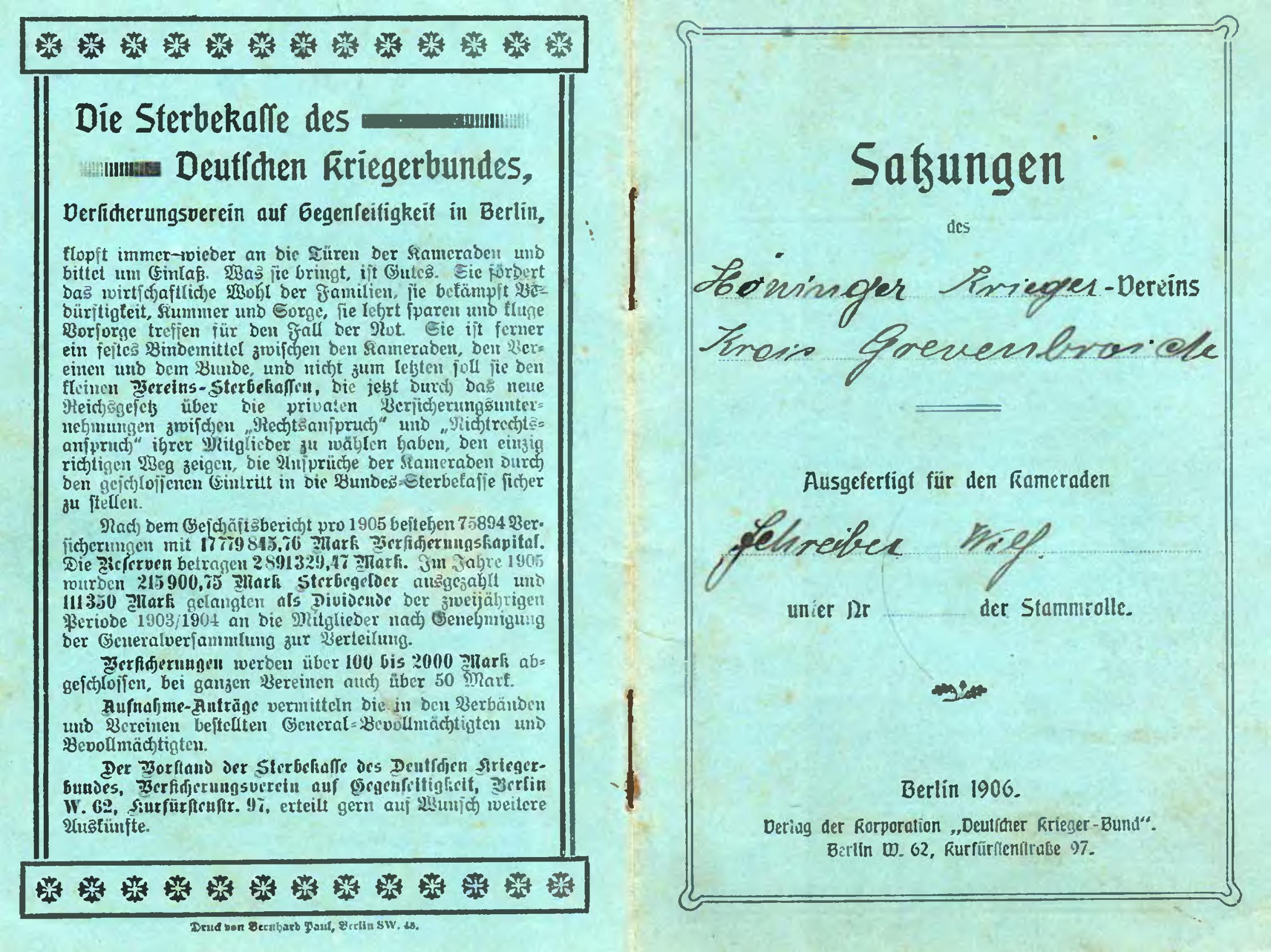 Satzung des DEUTSCHEN KRIEGER BUNDES | |