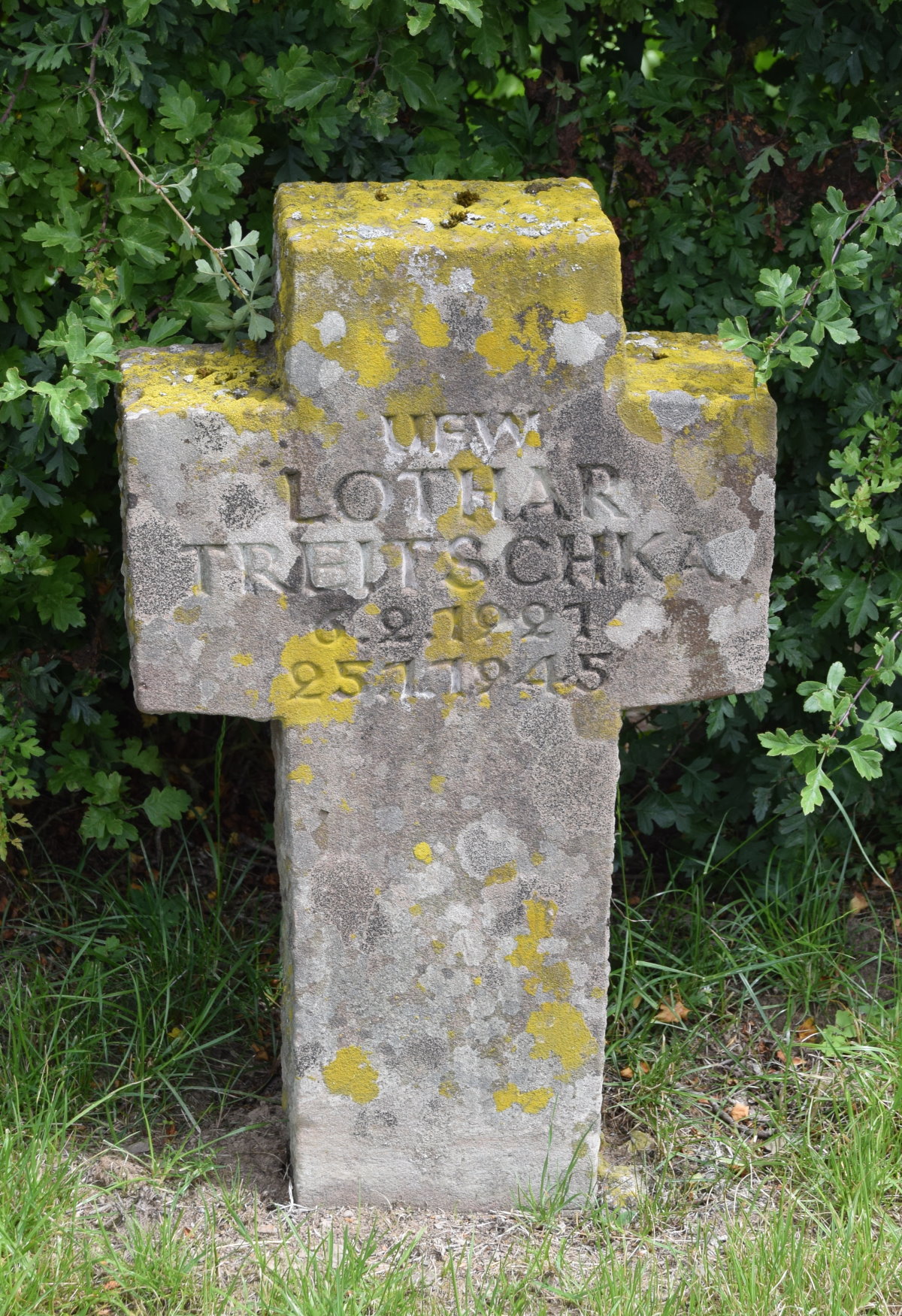 Grabkreuz auf dem Soldatenfriedhof an der Kapelle in Dahnen