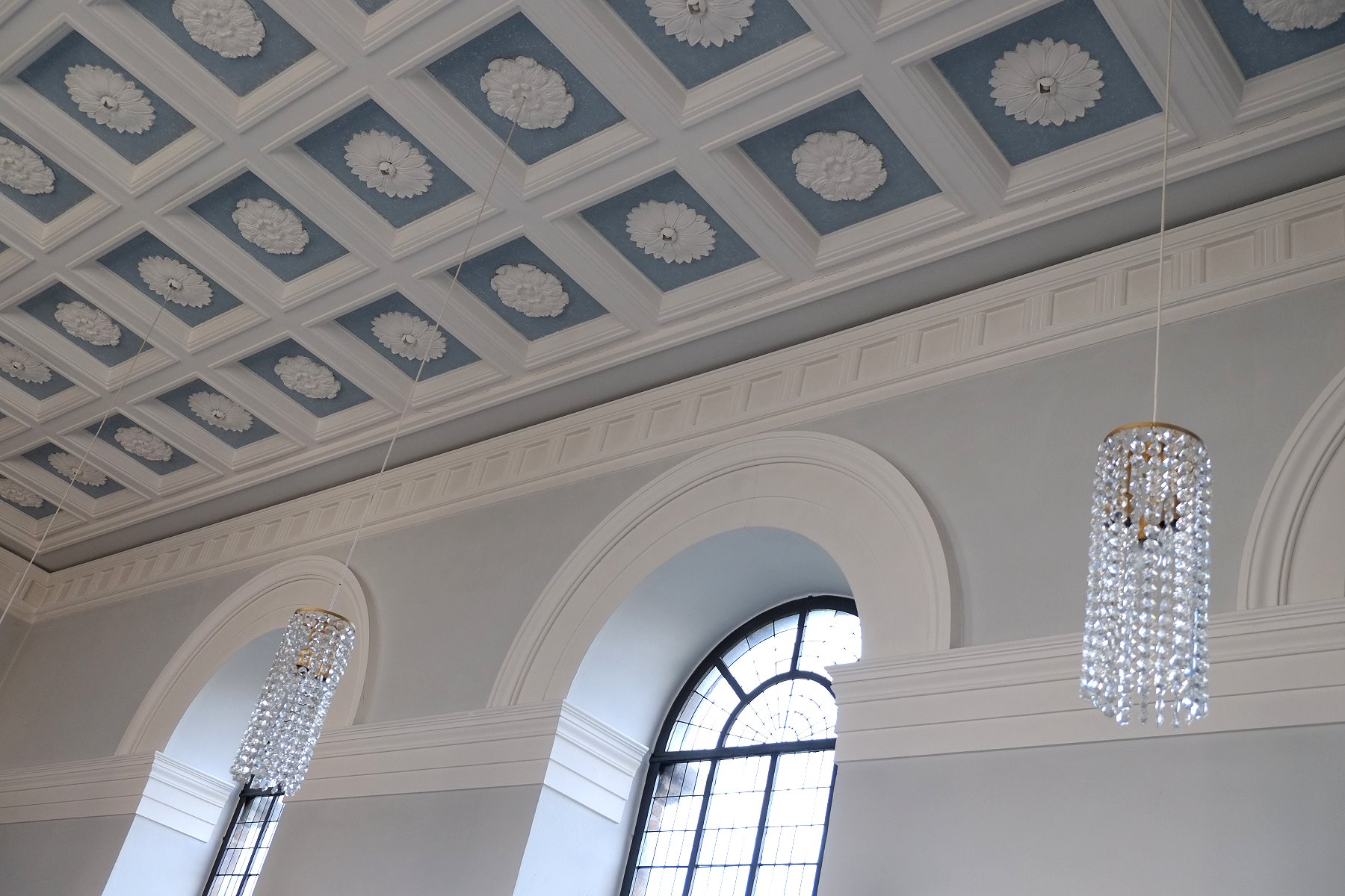 Die Deckensims und Fenster der ev. Kirche in Kürten-Delling