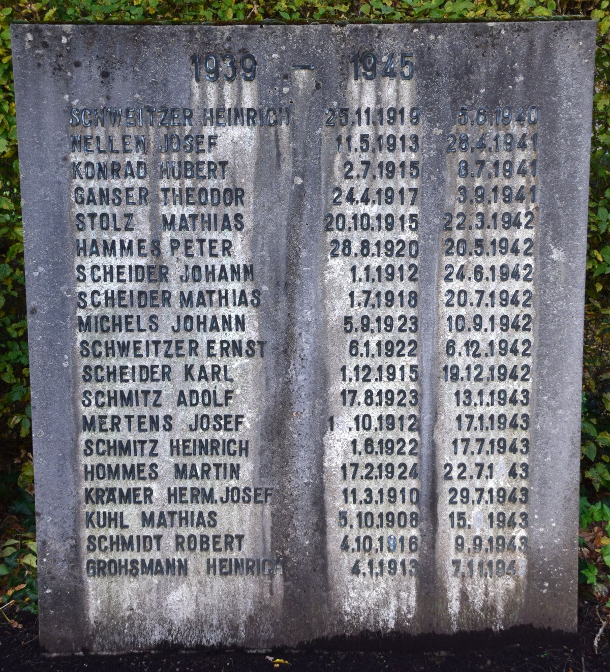 die Tafeln mit den Namen der Kriegsopfer 1939/45