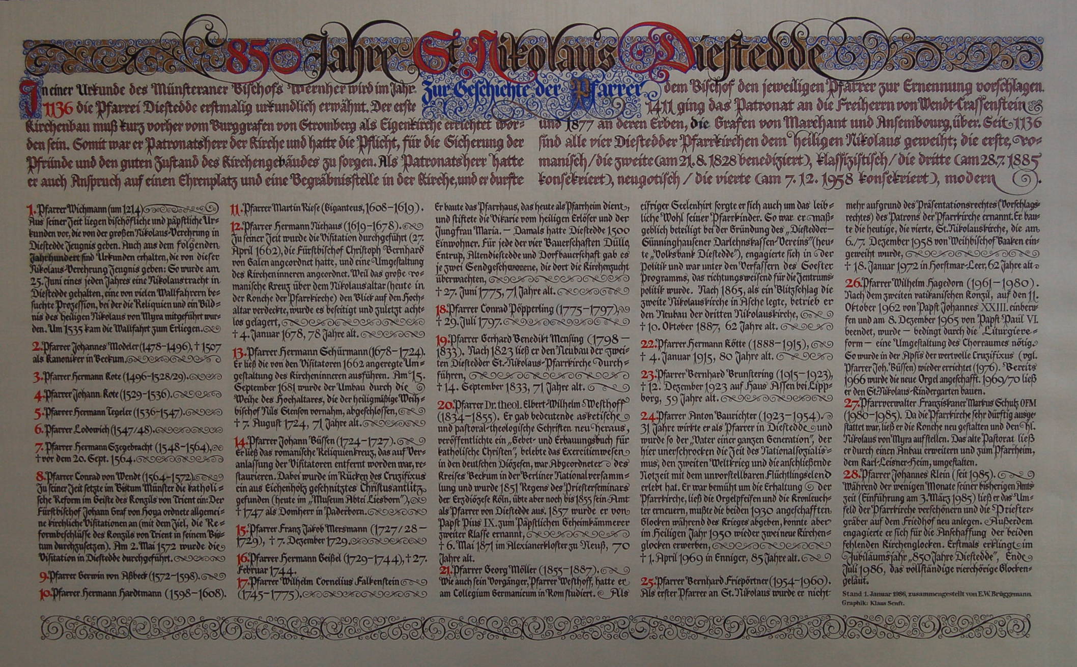 Informationstafel in der kath. Sankt Nikolauskirche von Diestedde | |||
