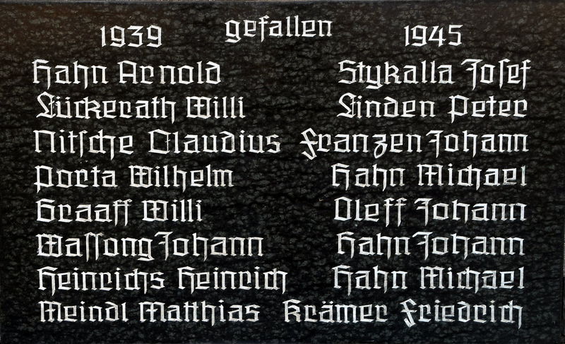 Das Denkmal für die Opfer der beiden Weltkriege an der Kirche Mariä Himmelfahrt in Disternich