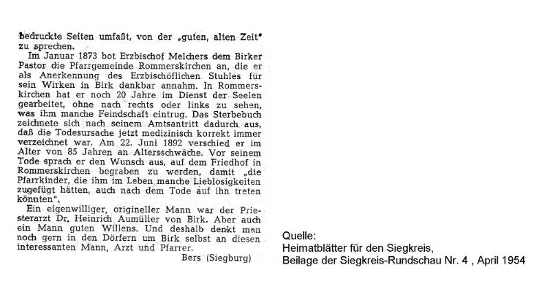 Dr. med. Christian Heinrich Aumüller, 1873-1892 Pfarrer in Rommerskirchen