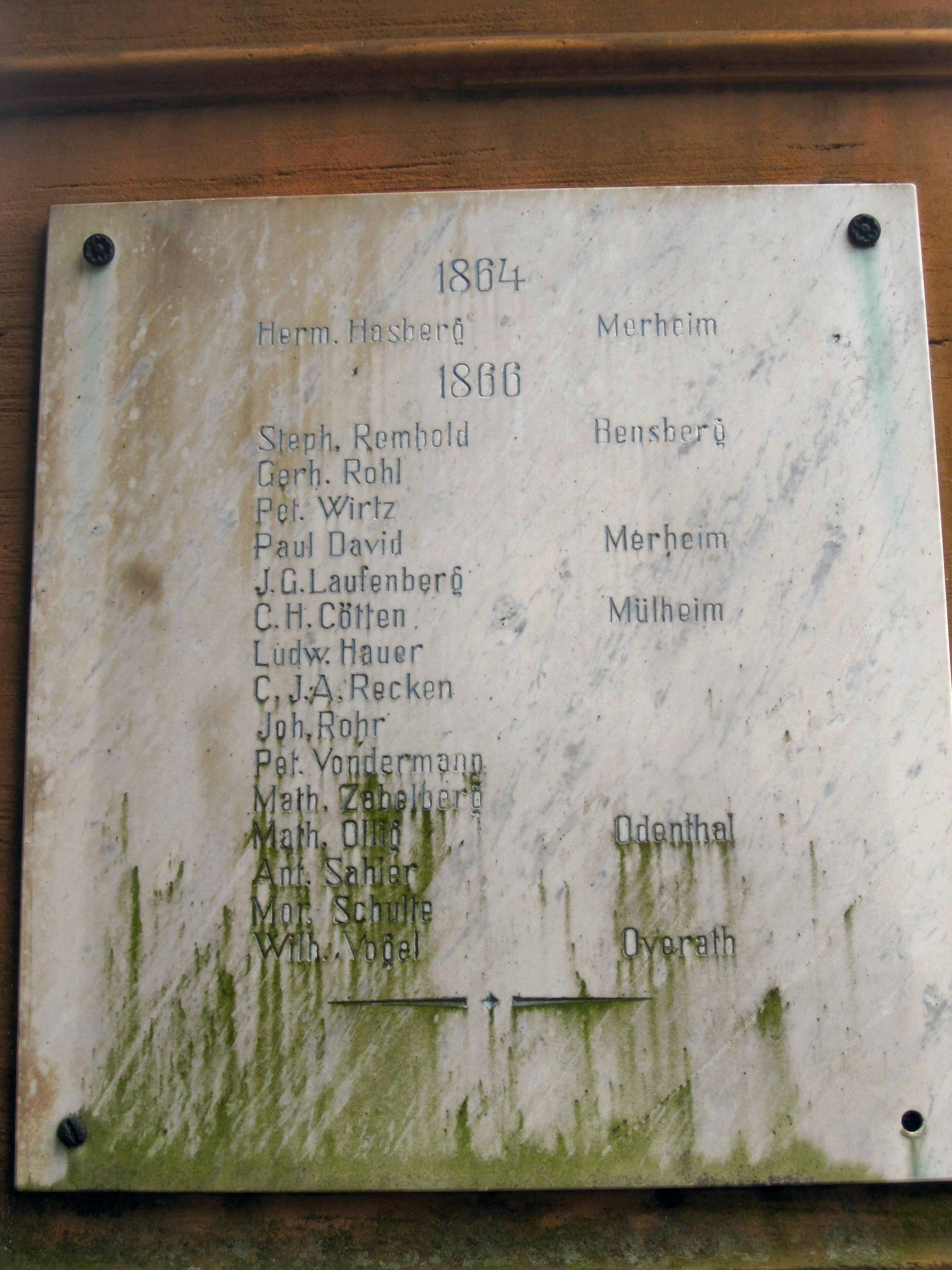 | aktuell | 07:28, 28. Jul. 2015 | 3.000 × 4.000 (1,46 MB) | Wilkinus (Diskussion • Beiträge) | {{Information |Beschreibung = '''Bensberg''': Namenstafel 1864+66 am Kriegerdenkmal Einigungskriege |Quelle = eigenes Foto |Urheber = Peter Wittgens |Datum = 25-09-2012 |Scans = |Genehmigung = |Andere_Versionen = |Anmerkungen = } |